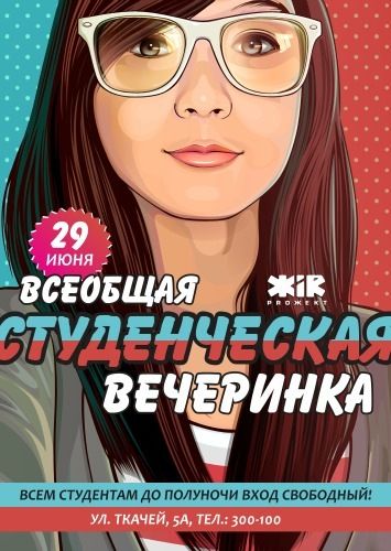 "ЖiR proжект" DJ's: Manelov, Andrey Belov "inЖiR" DJ's: Zakir, Alex Mega МС Ветров Sexy GO-GO Всем студентам до полуночи - вход свободный!