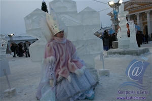 Фестиваль-конкурс ледово-снежных скульптур “Кострома – зимняя сказка” стартовал 1 февраля. Свои волшебные статуи на Сусанинской площади начали возводить около 250 человек. На работу ушло три дня. Зато зрителям на “доработку” хватило всего двух: лось остался без рогов, балерина превратилась в Венеру Милосскую, а собор с четырьмя куполами – в простой домик. А как хорошо все начиналось…