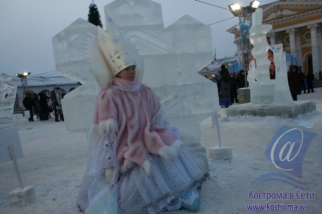 Во время конкурса преобразились не только ледово-снежные глыбы. Костромские снегурочки Анна Стулова и Катя Быстрицкая предстали на празднике в новых амплуа. Анна, бывшая главной Снегурочкой области больше шести лет, на сцене вела речь от имени сказочной Души России.
